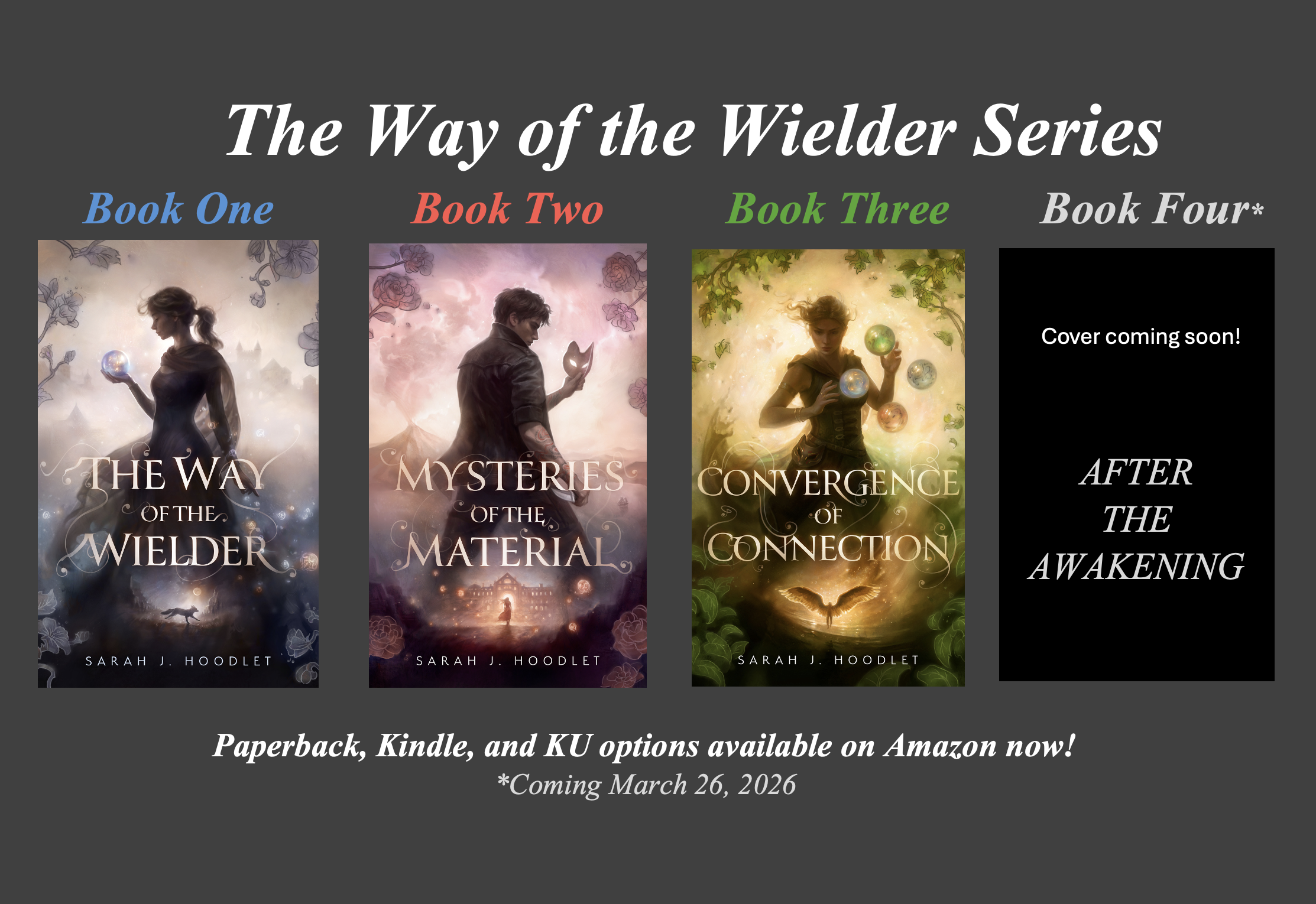 Book 4: After the Awakening. The cover is not yet revealed, but is shown with a black box and the words "Cover coming soon!".