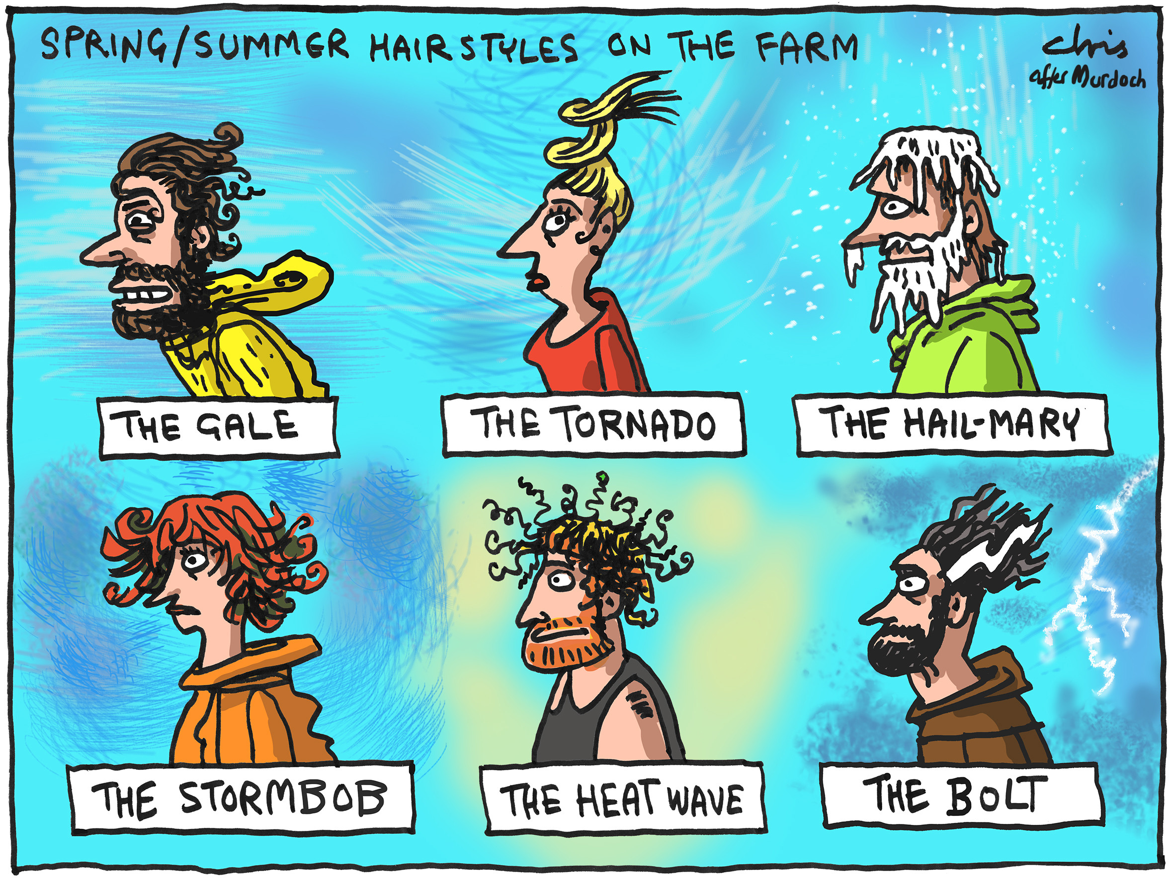 Spring/summer hairstyles on the farm #cartoon #farmersweeklyNZ ( drawn Dec 2025 )